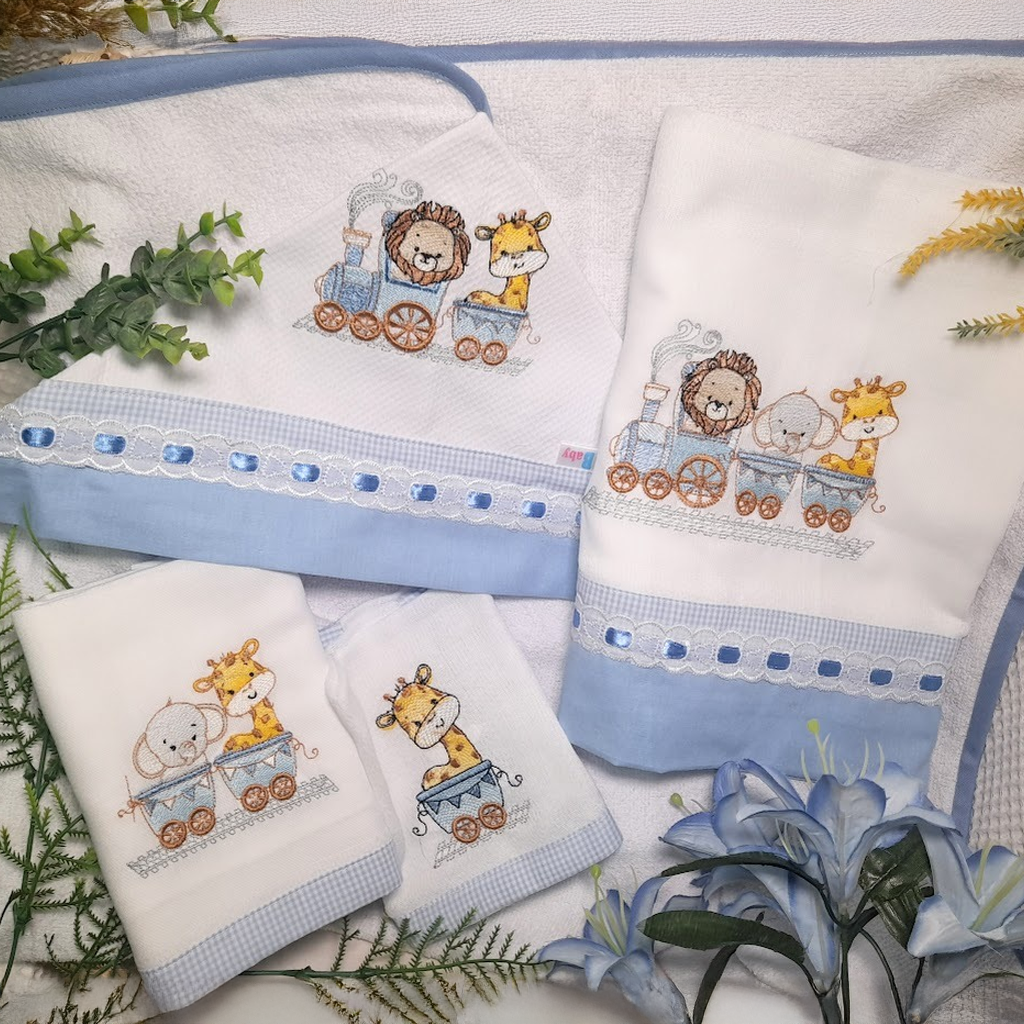 - Acabamento Artesanal: Fraldas e lencinhos de boca com barrado em crochê ou tecido, pensados para serem fáceis de cuidar e passar.